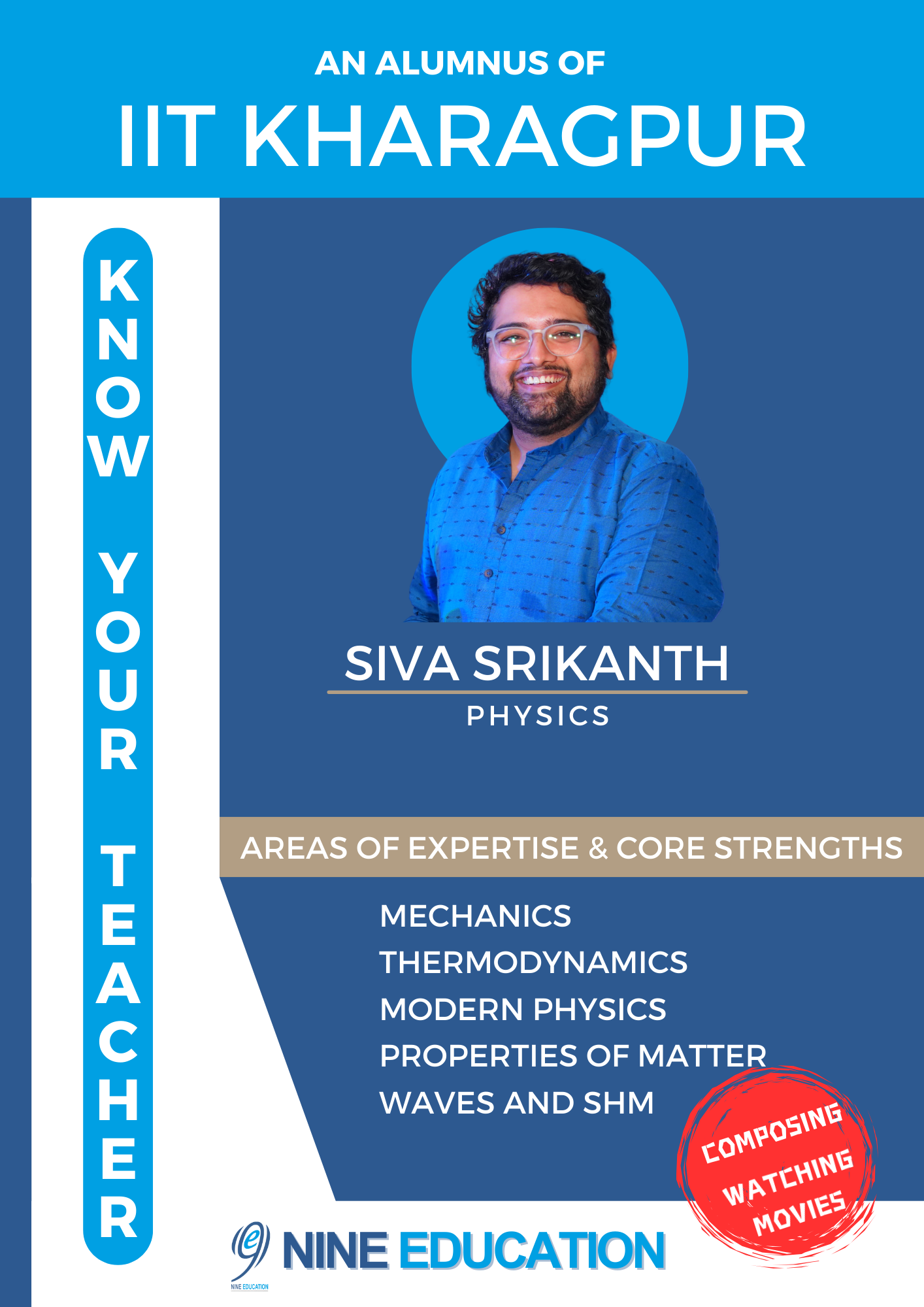 Mr. Srikanth, an esteemed alumnus of IIT Kharagpur, has been a key figure at Nine Education for the past 12 years as a founding educator.